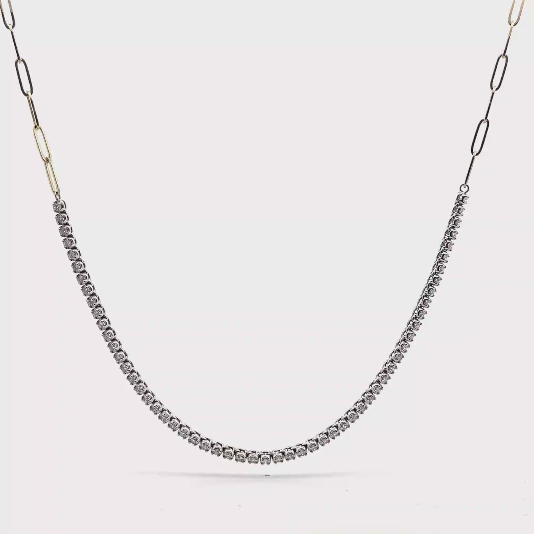 14K TWO TONE GOLD & DIAMOND PAPERCLIP TENNIS NECKLACE - 1.57 CTW