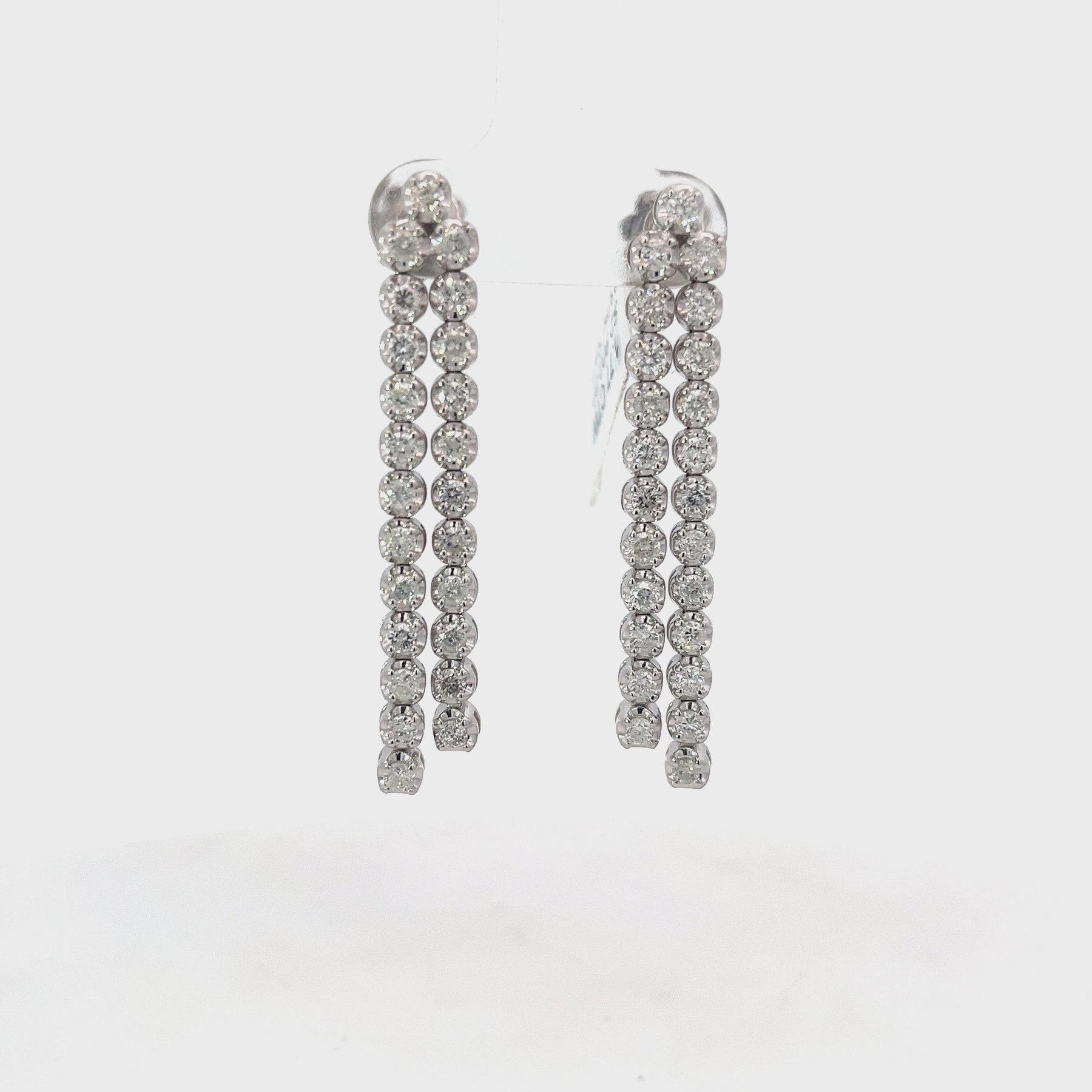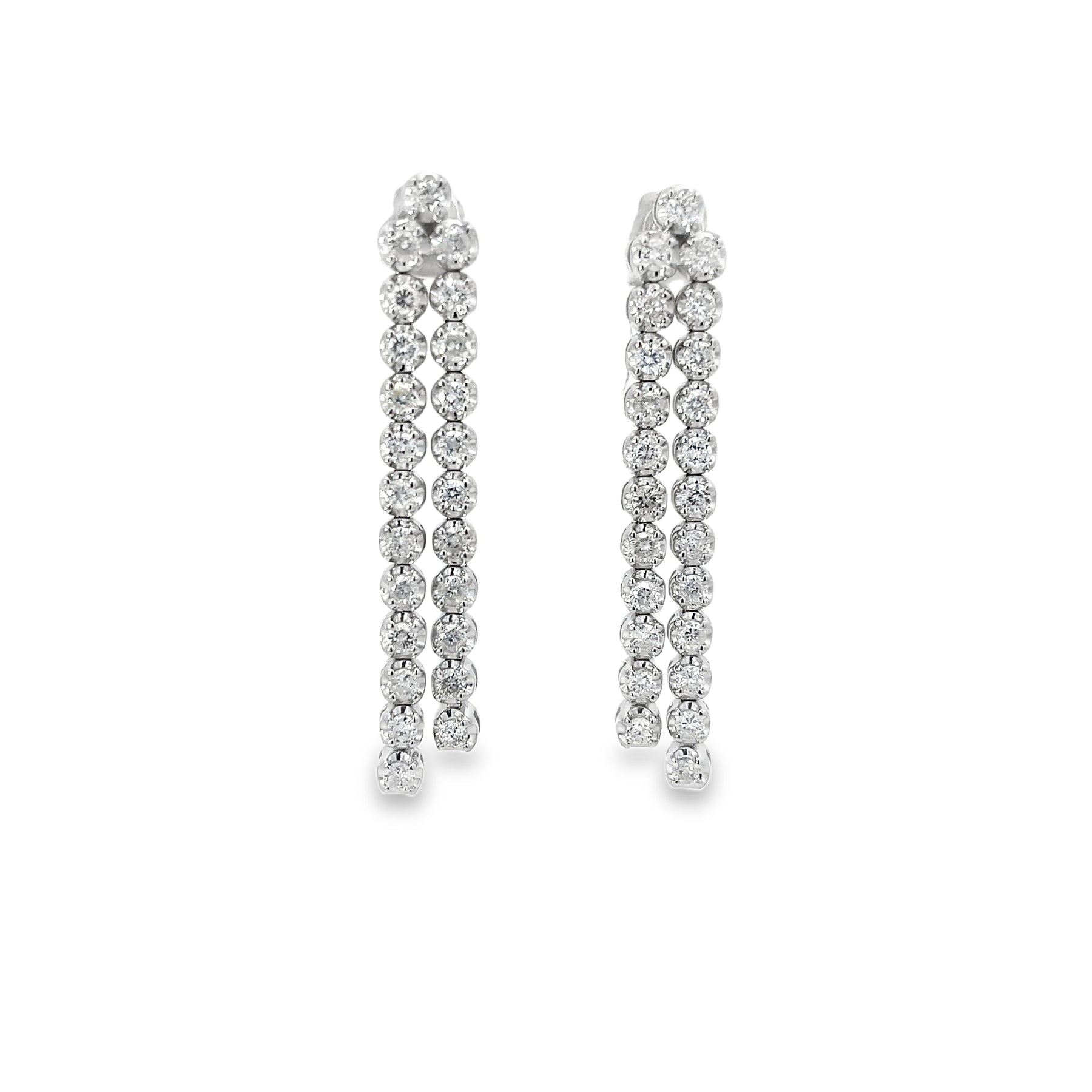 14K WHITE GOLD DIAMOND BUTTERCUP DOULBE LINEAR EARRINGS - 1.77 CTW