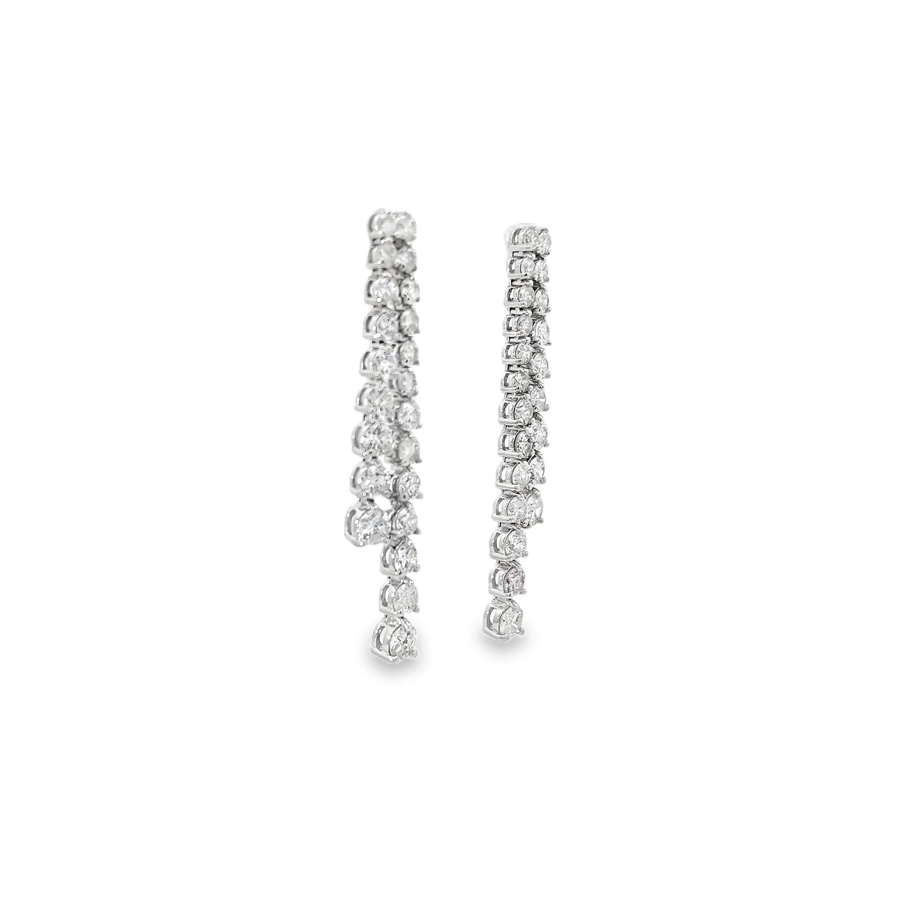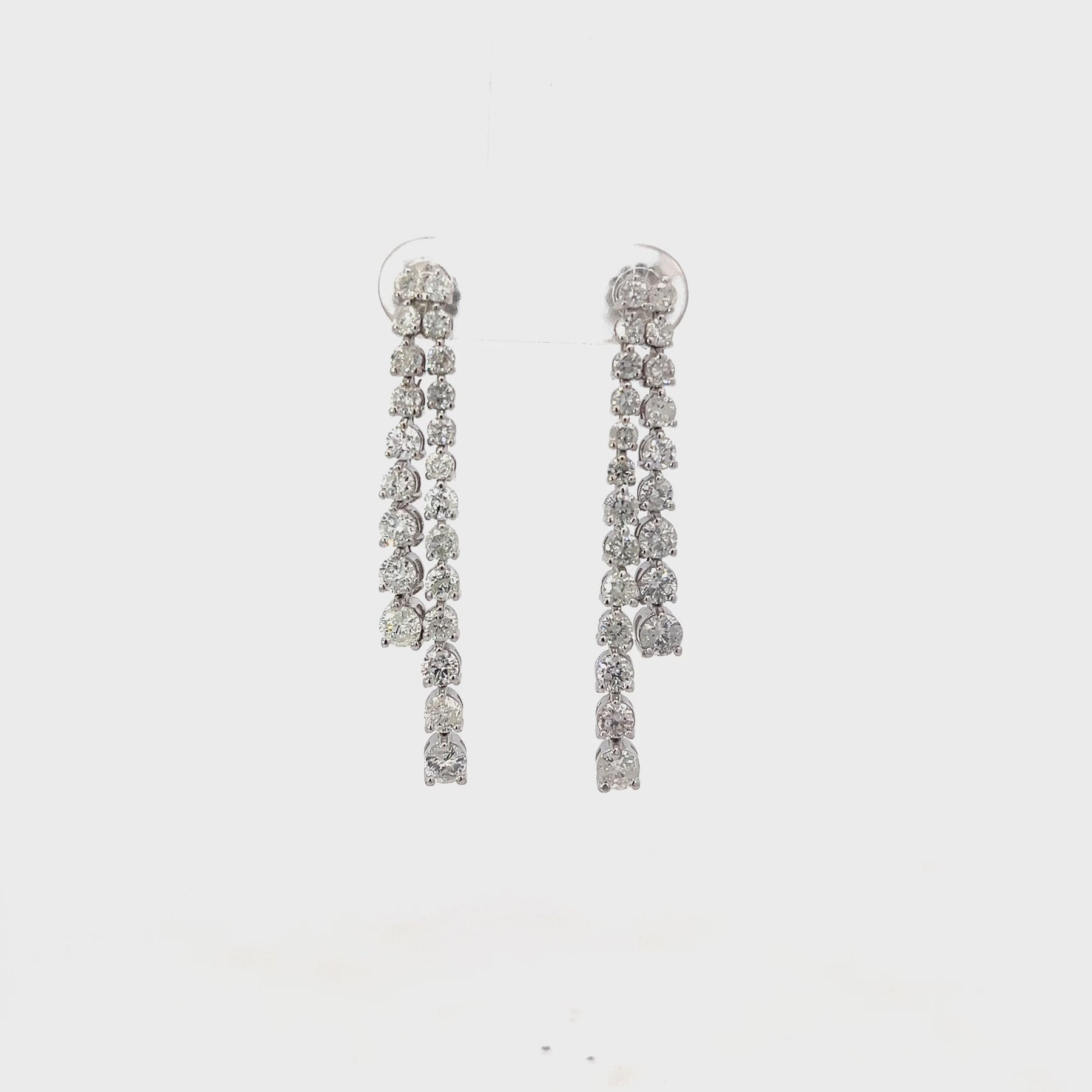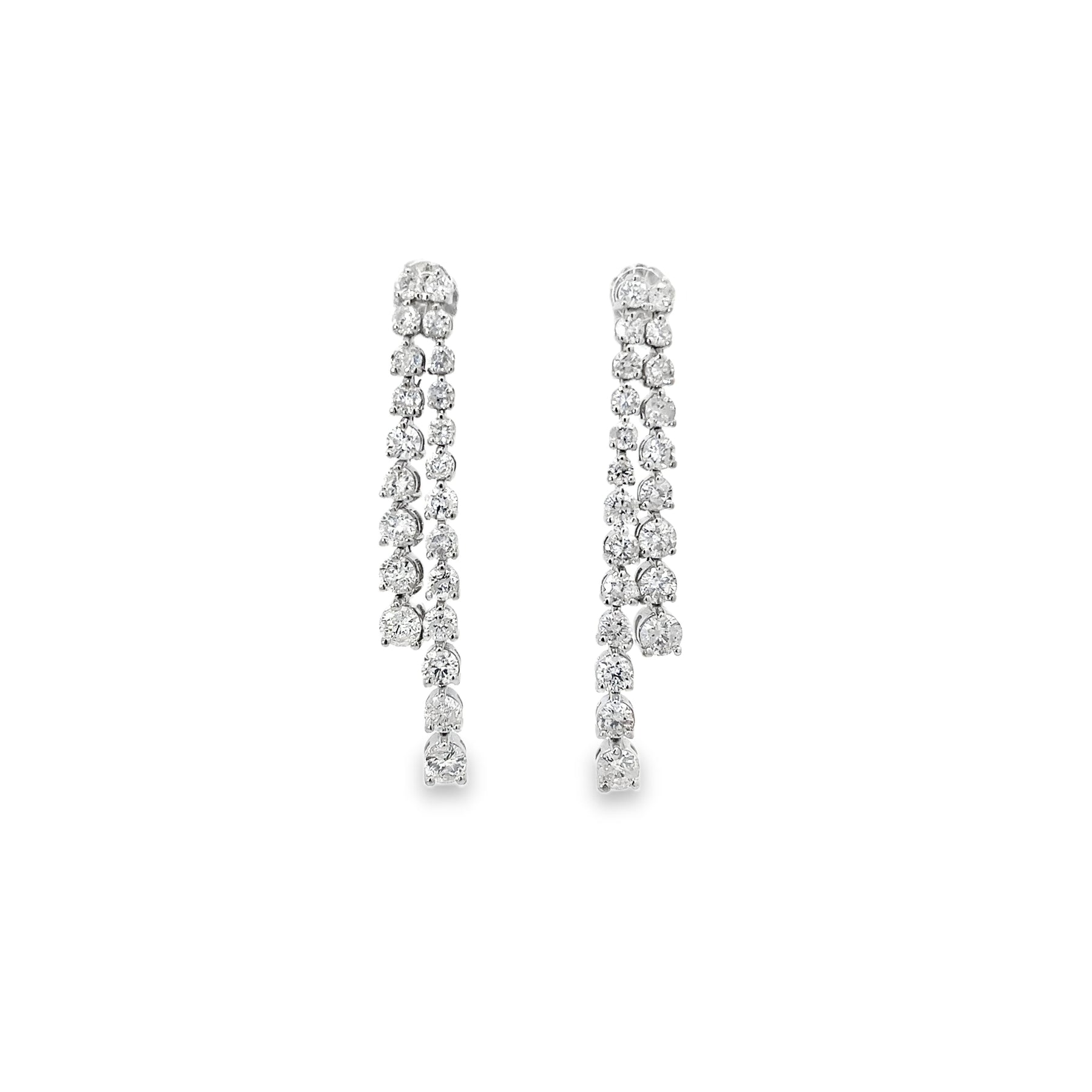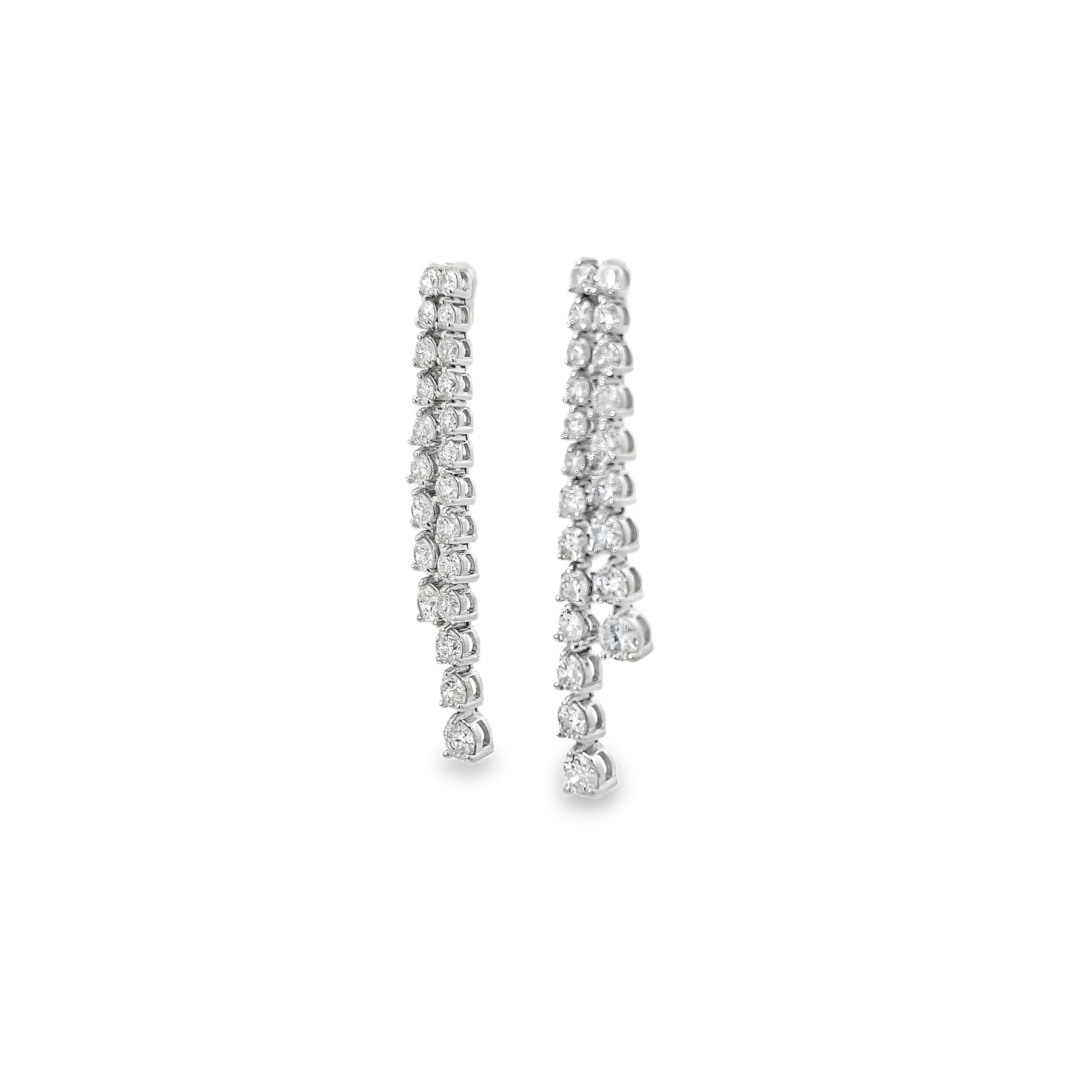 14K WHITE GOLD DIAMOND 3 PRONG GRADUATED DOUBLE LINEAR EARRINGS - 3.42 CTW