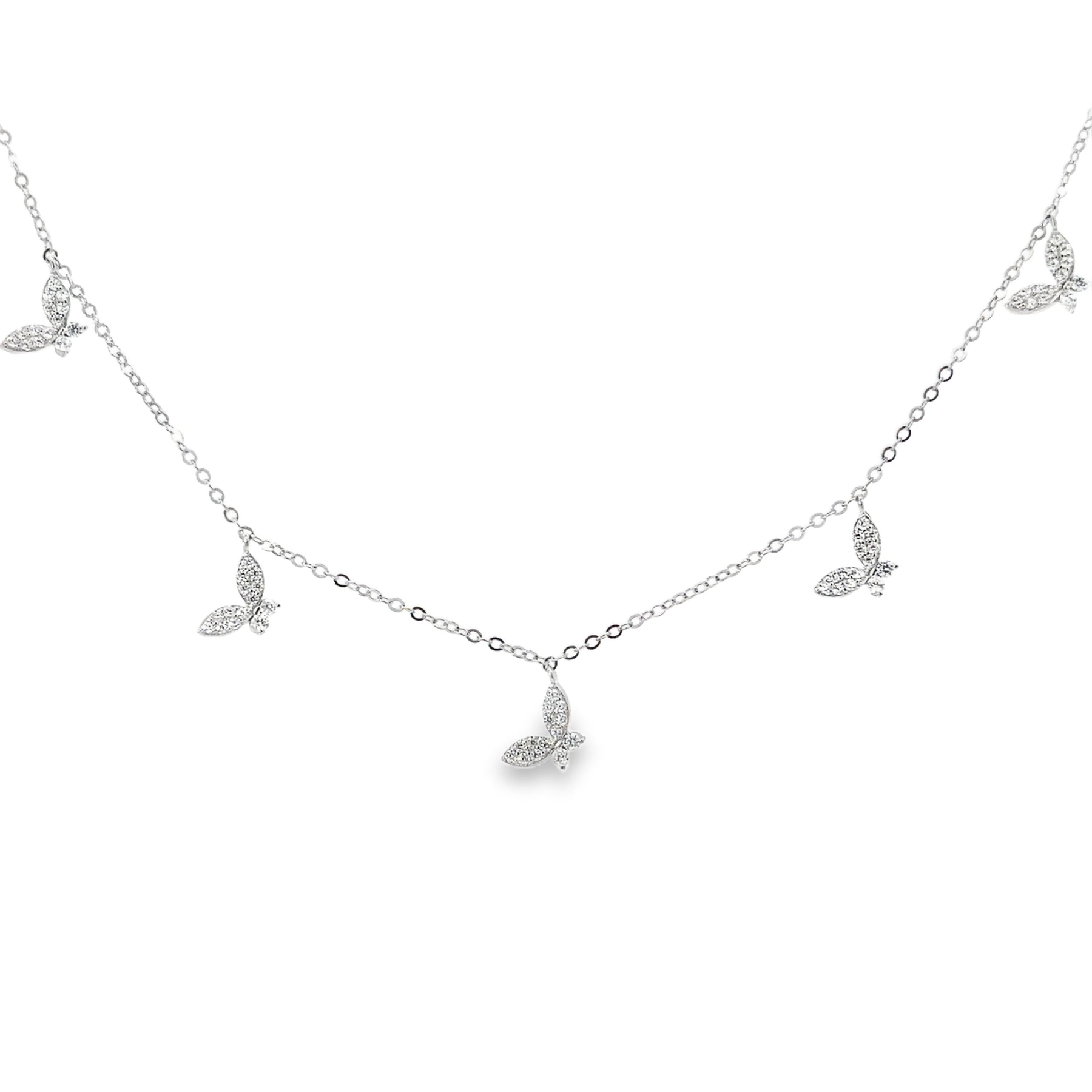 RHODIUM PLATED STERLING SILVER PAVE BUTTERFLY STATION NECKLACE