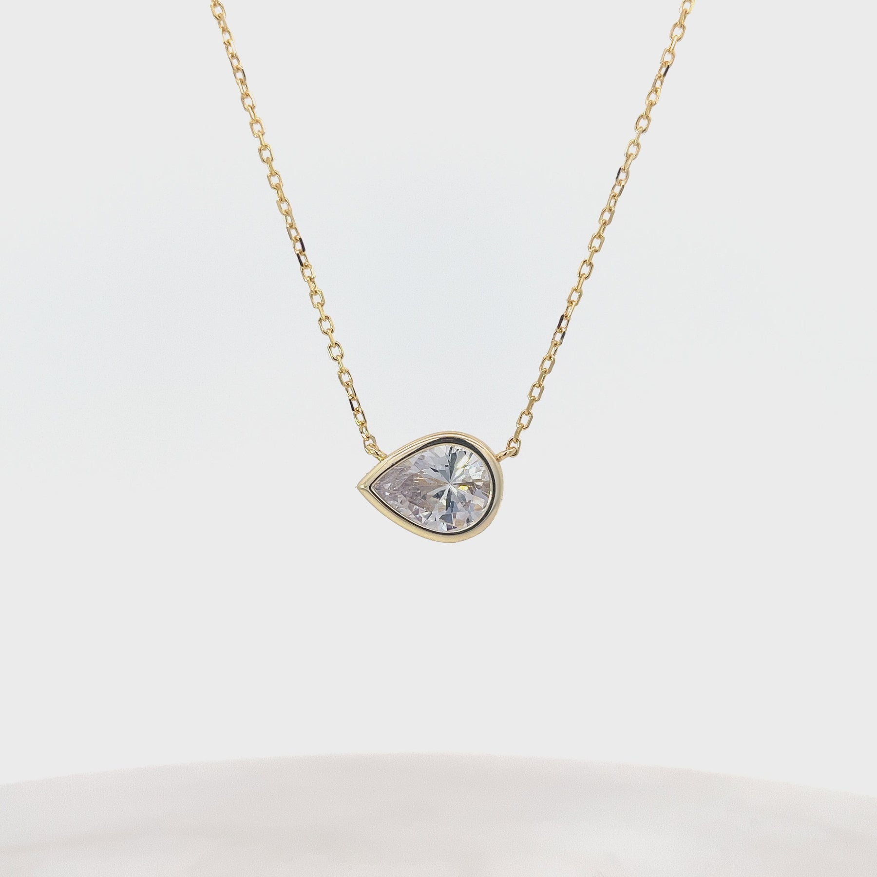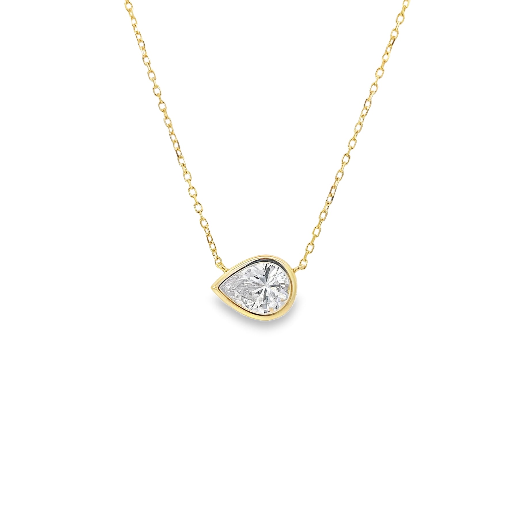 YELLOW GOLD PLATED STERLING SILVER HORIZONTAL CZ BEZEL TEARDROP NECKLACE