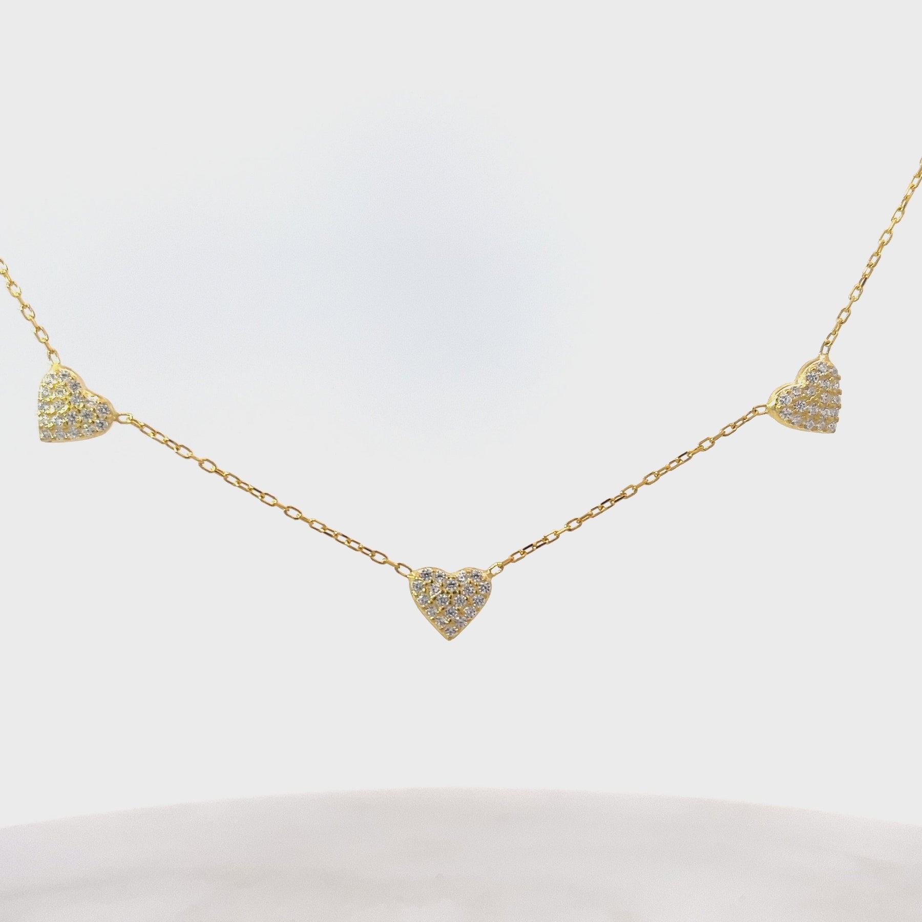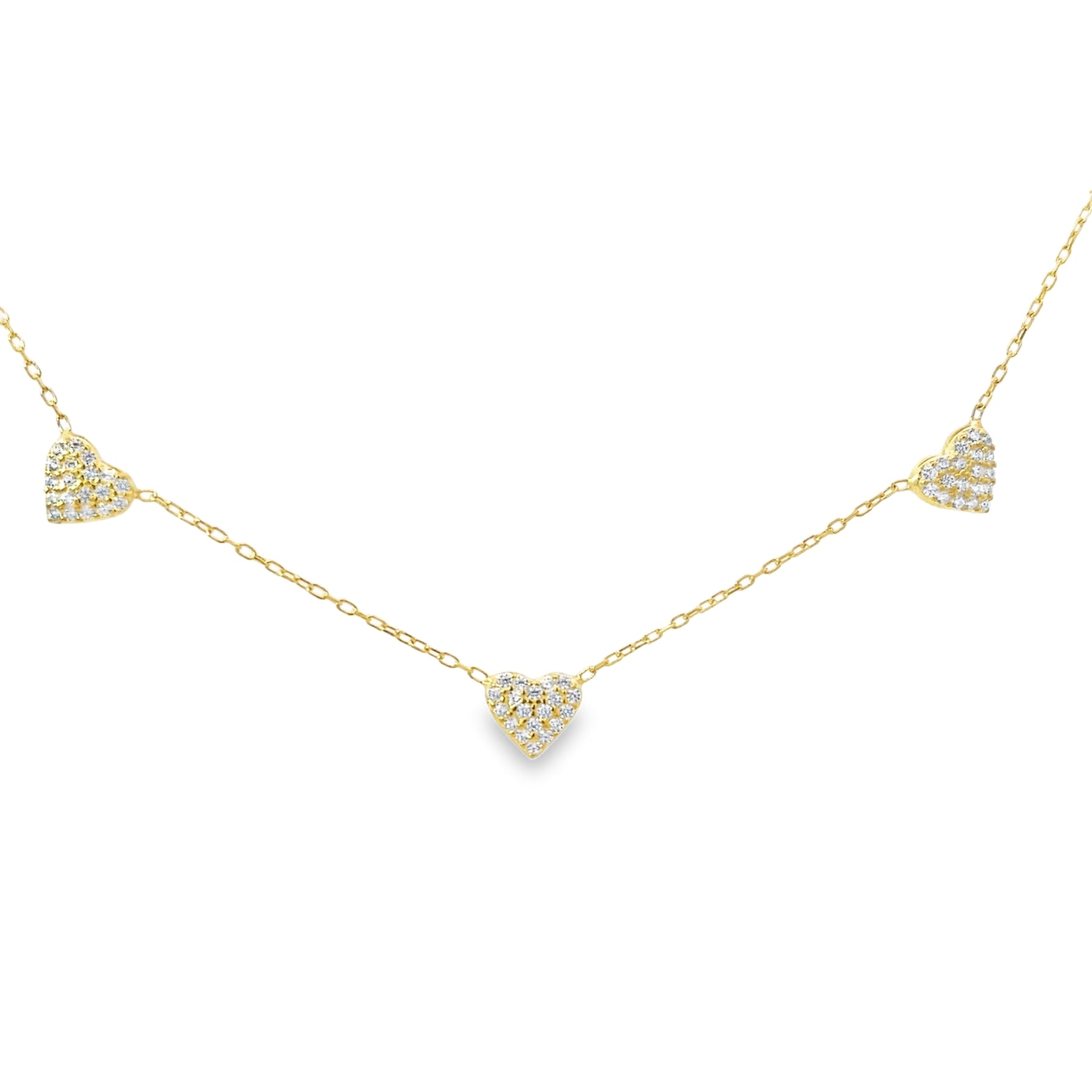 YELLOW GOLD PLATED STERLING SILVER 5 CZ PAVE HEART NECKLACE