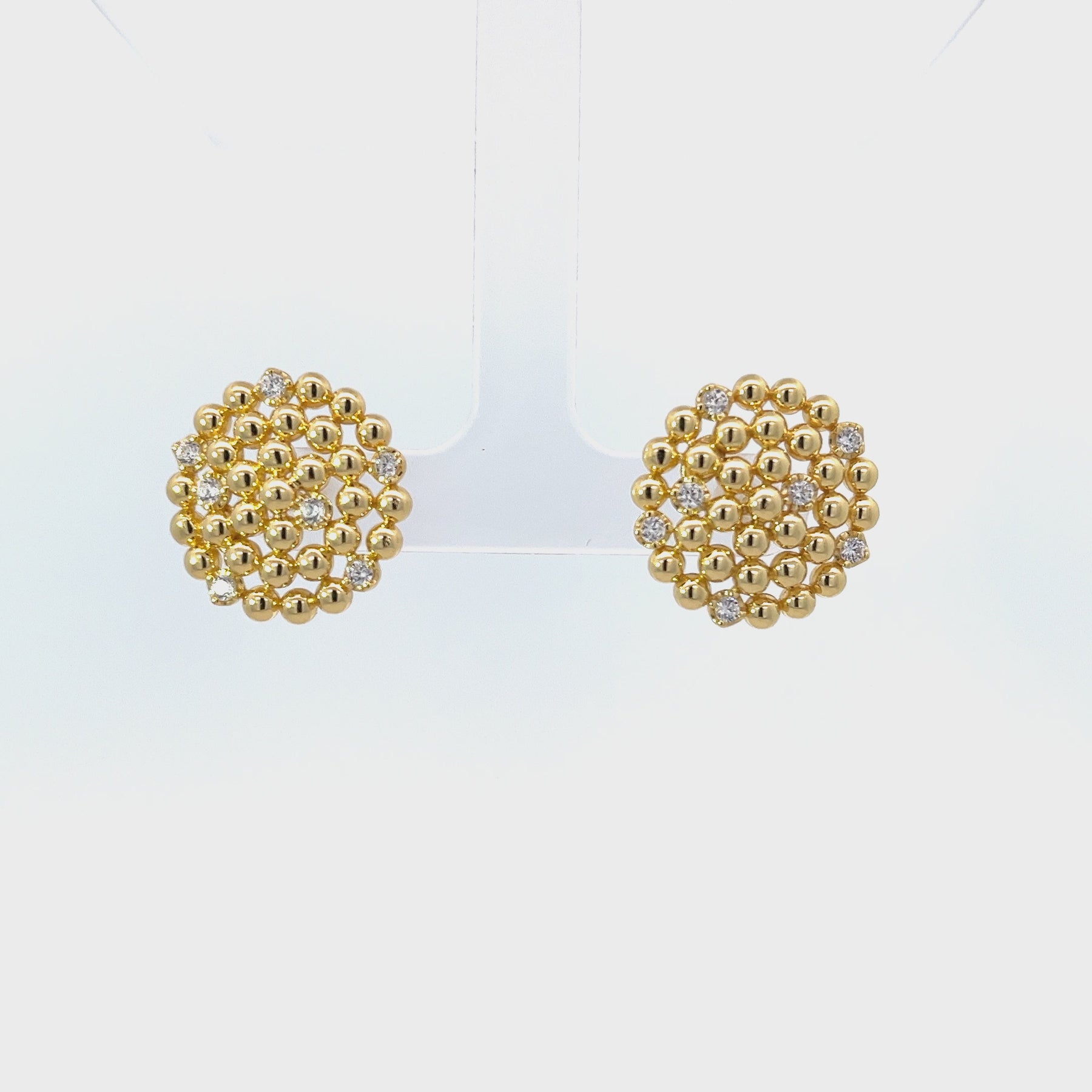 YELLOW GOLD PLATED STERLING SILVER BEADED GOLD AND CZ STUD EARRINGS