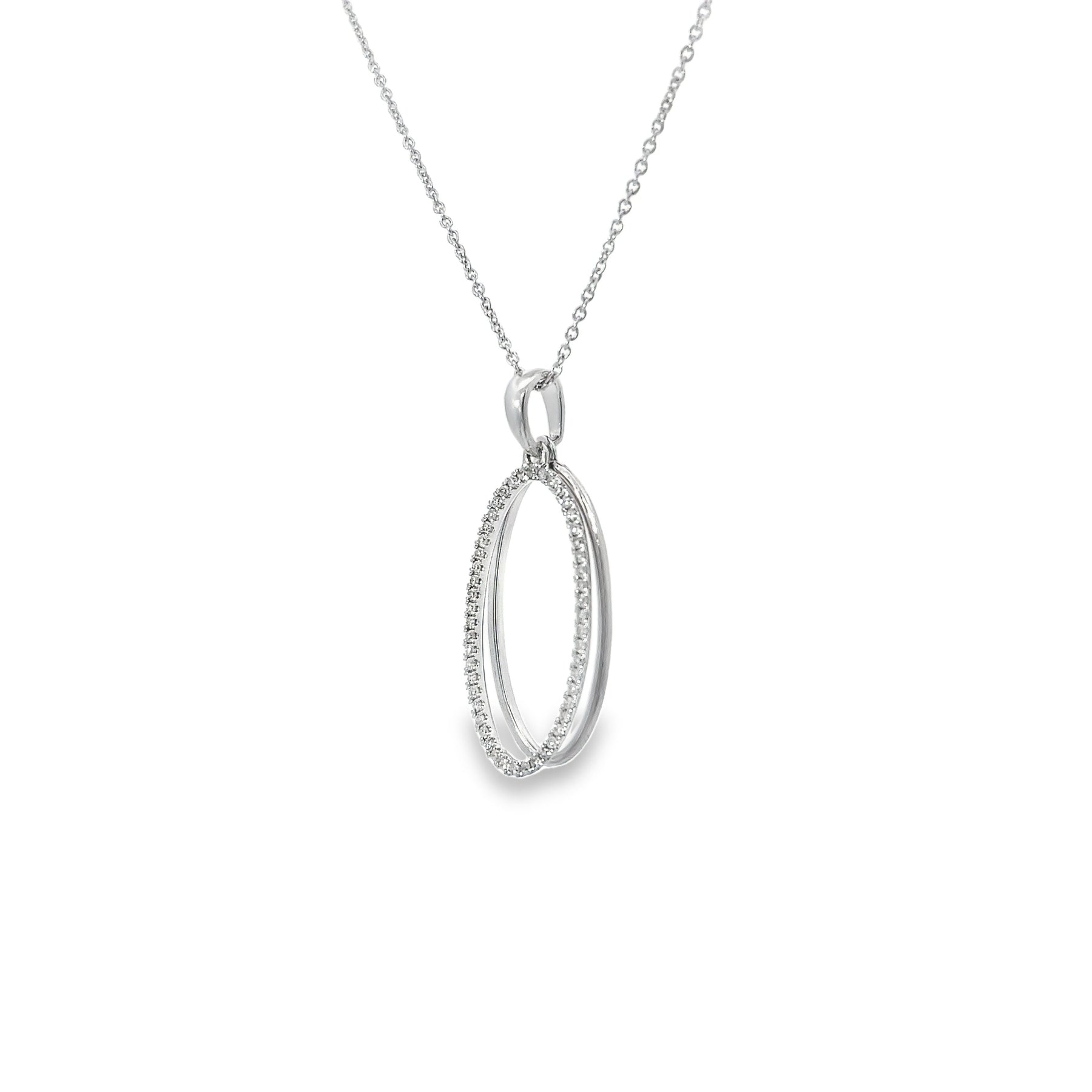 14K WHITE GOLD DIAMOND DOUBLE OVAL PENDANT NECKLACE - 0.24 CTW